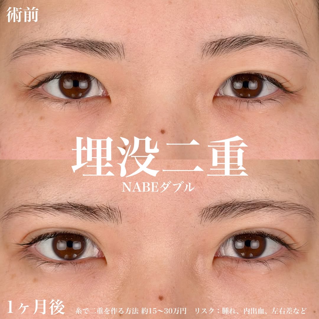 二重整形埋没法で非常に腫れの少なかった症例です。