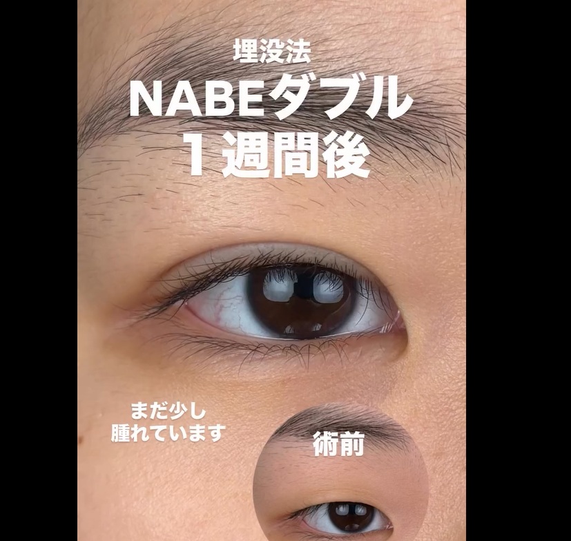 当院スタンダードメニュー(他院では上位クラス)のNABEダブルで末広二重を作った症例です。