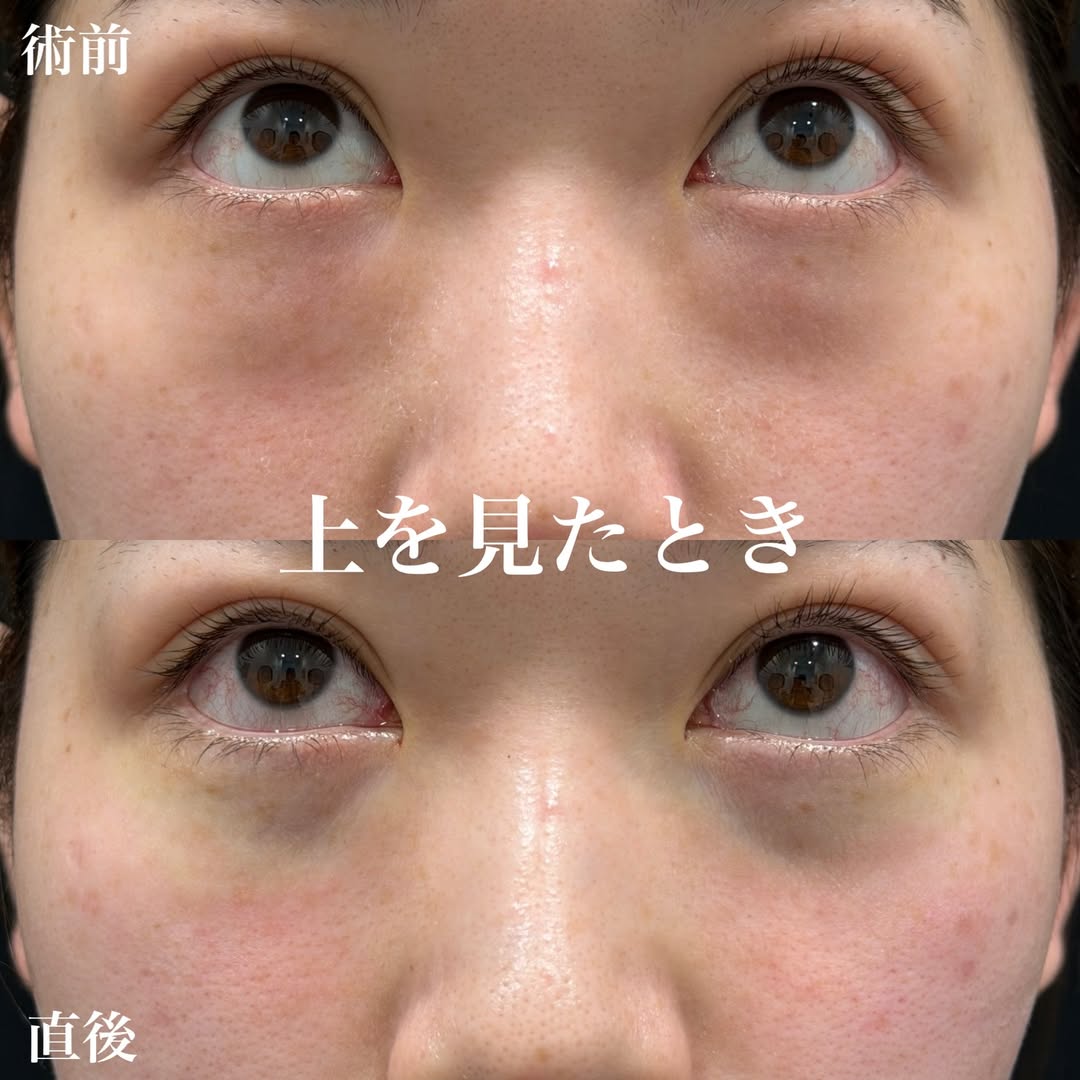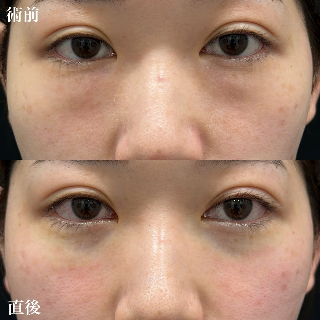 クマ取り治療の症例です。脱脂のみ行った方の施術直後です。