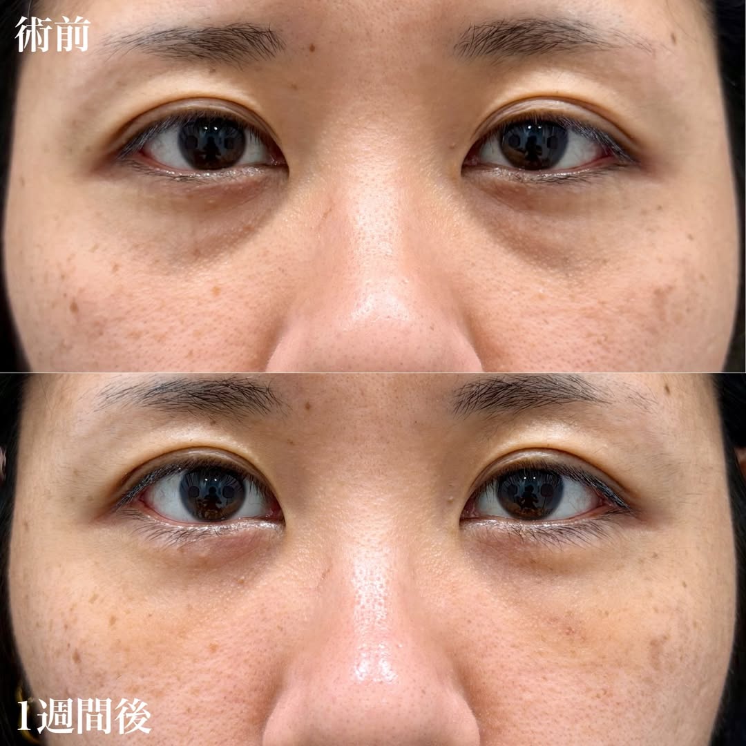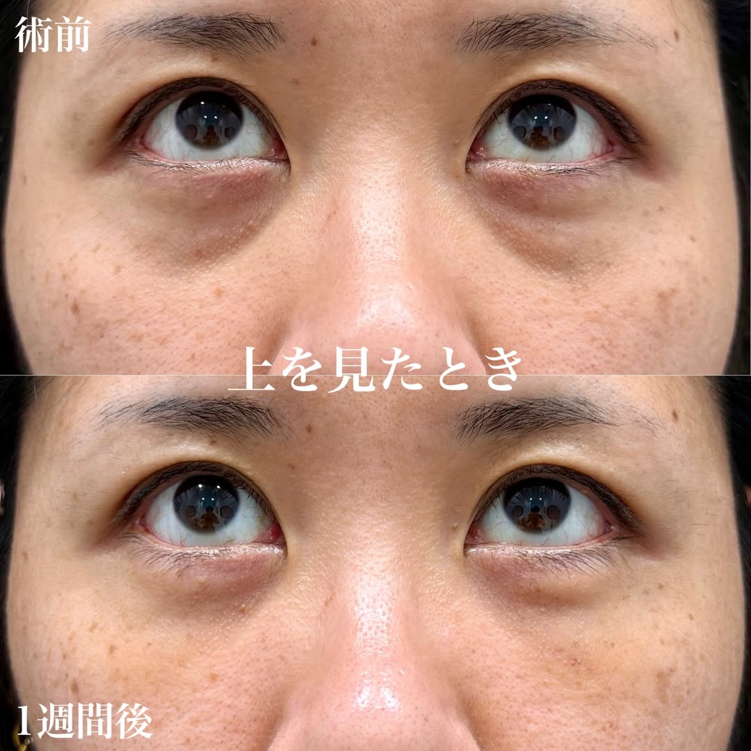 クマ取り治療、裏ハムラ法の美容外科施術1週間後の症例です。
