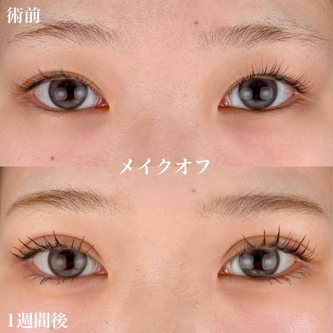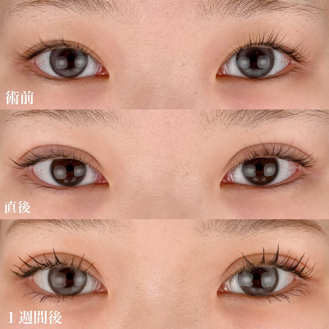 施術の説明: 片側あたり3本ずつの糸を瞼内部に埋め込み、二重のラインを形成。長持ちしやすくバレにくい“裏留めの挙筋法”を採用しています。