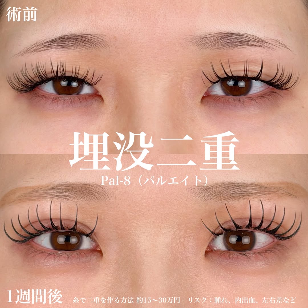 二重整形埋没法最高ランクのPal-8(パルエイト)による、幅広め平行型の症例です。